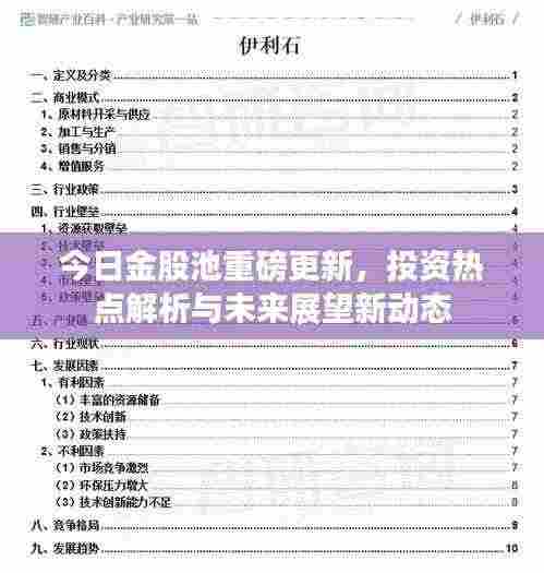 随着金融市场的日益繁荣,投资者对股市信息的关注度不断提高,本文将围绕“今日金股池最新消息”这一主题,为您带来最新的投资热点及未来展望。